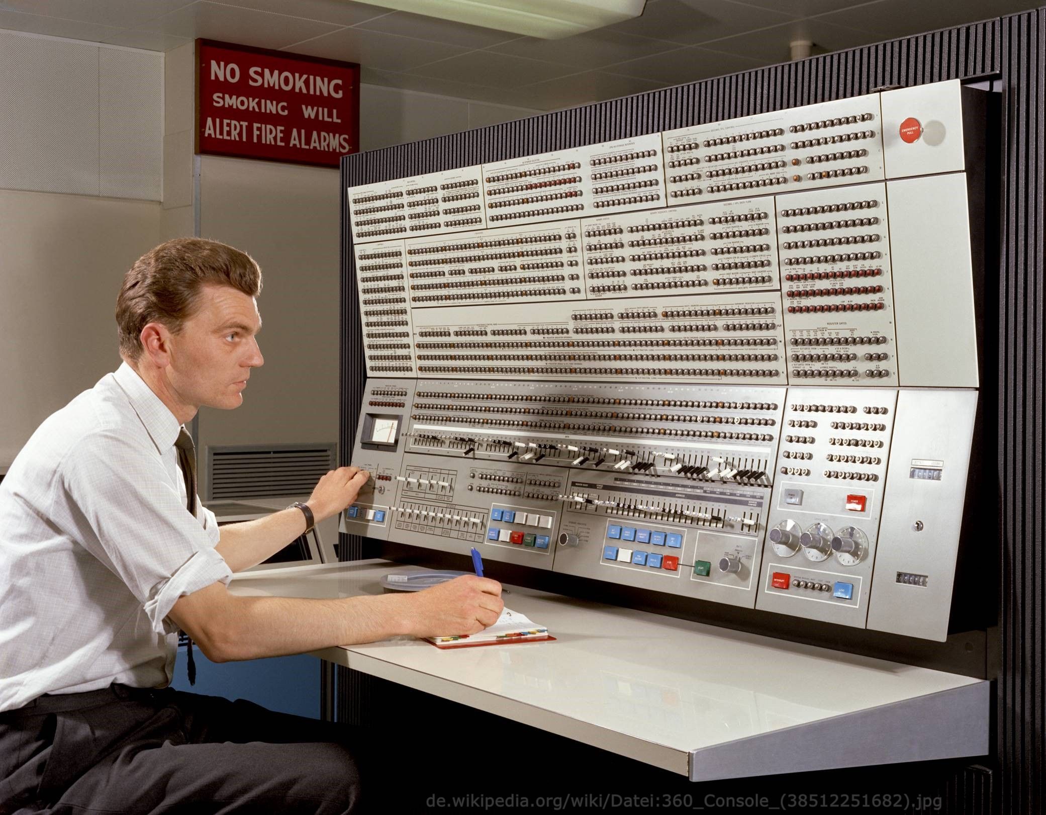 Note that the incorporation of certain features or expansion options may mean a particular actual front panel differs slightly from these illustrations. Also note than some pictures of actual front panels may have incorrectly coloured indicator lamps (round) and/or push buttons (rectangular) or incorrectly labelled rotary switch knobs. Originals were sometimes missing and have been replaced with similar but incorrect substitutes. The (new) illustrations below are correct and agree with the relevant IBM sources.